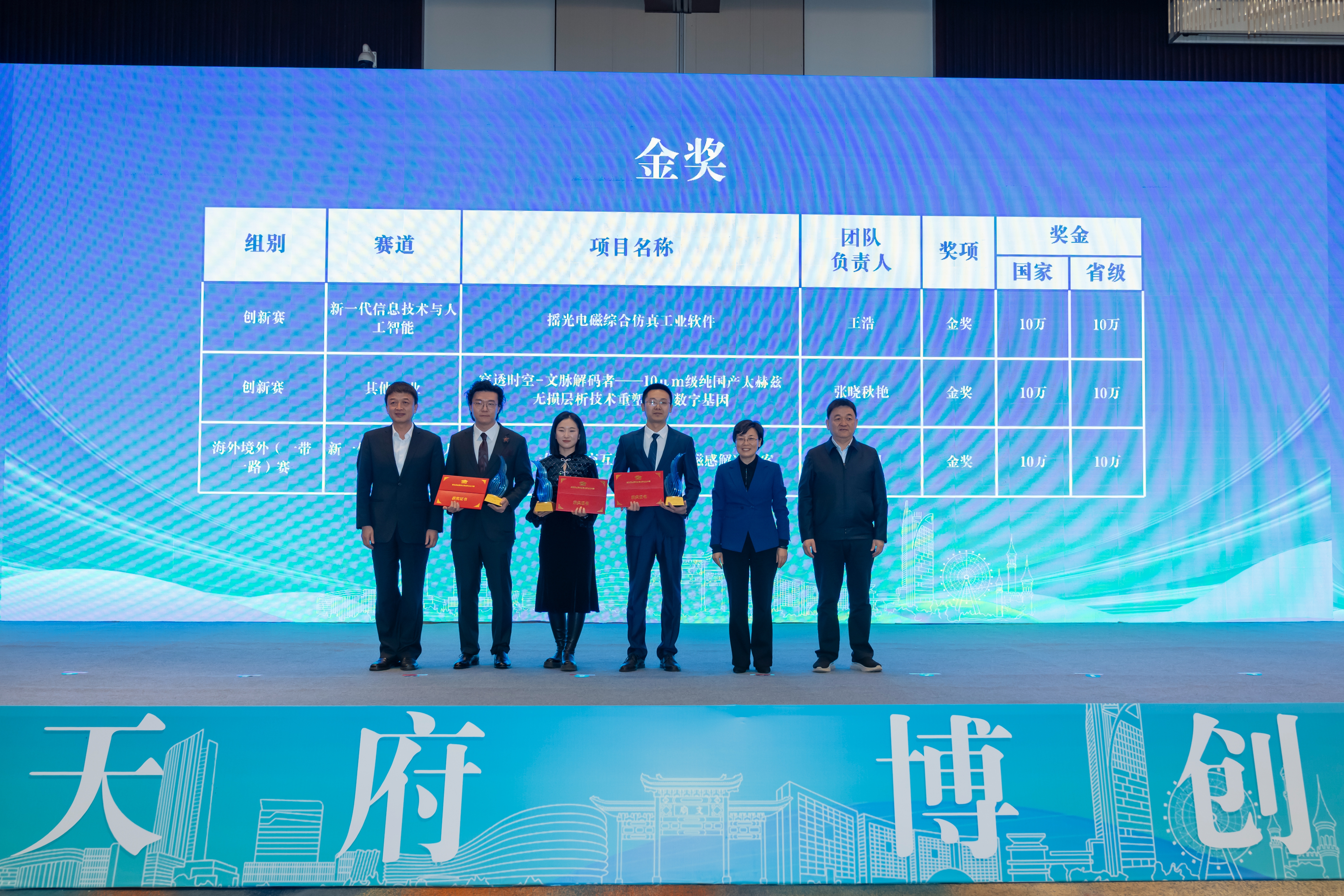 会议现场,通报表扬了第三届全国博士后创新创业大赛组织工作突出单位,并为获奖项目颁奖。其中,金奖项目“摇光电磁综合仿真工业软件”、银奖项目“擘海氢蓝-海水无淡化原位直接电解制氢”还进行了现场路演展示。此外,四川大学、天府绛溪实验室、泸州老窖集团有限公司等10家单位与博士(后)代表进行入站(职)现场签约。