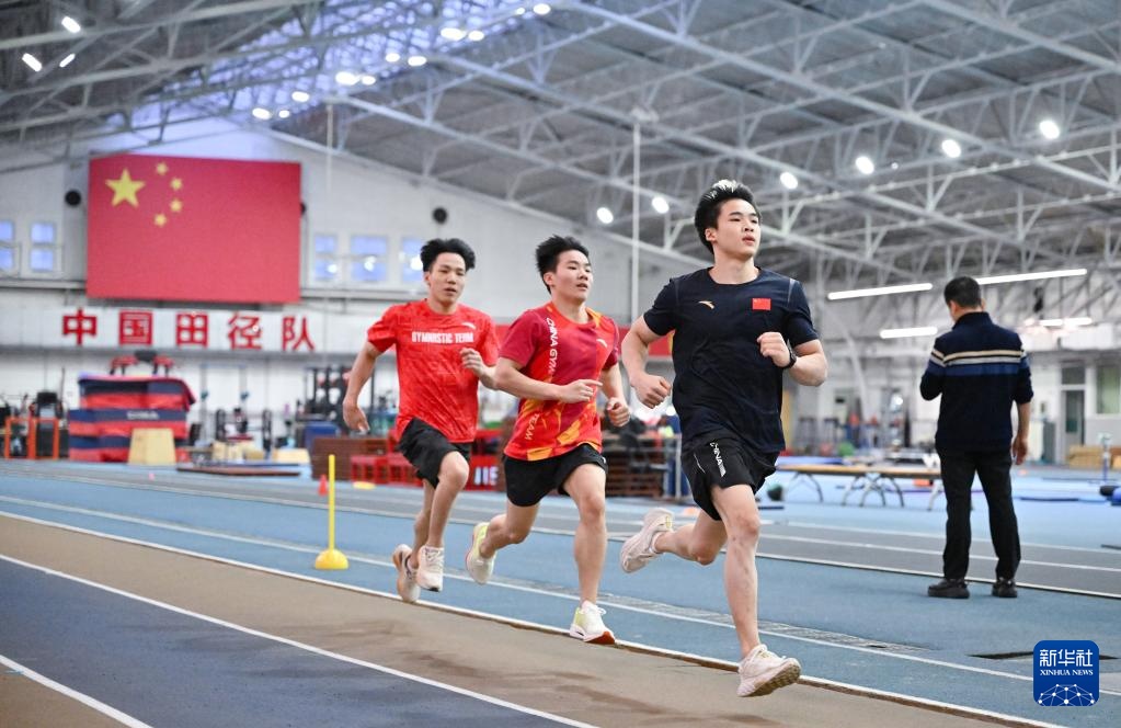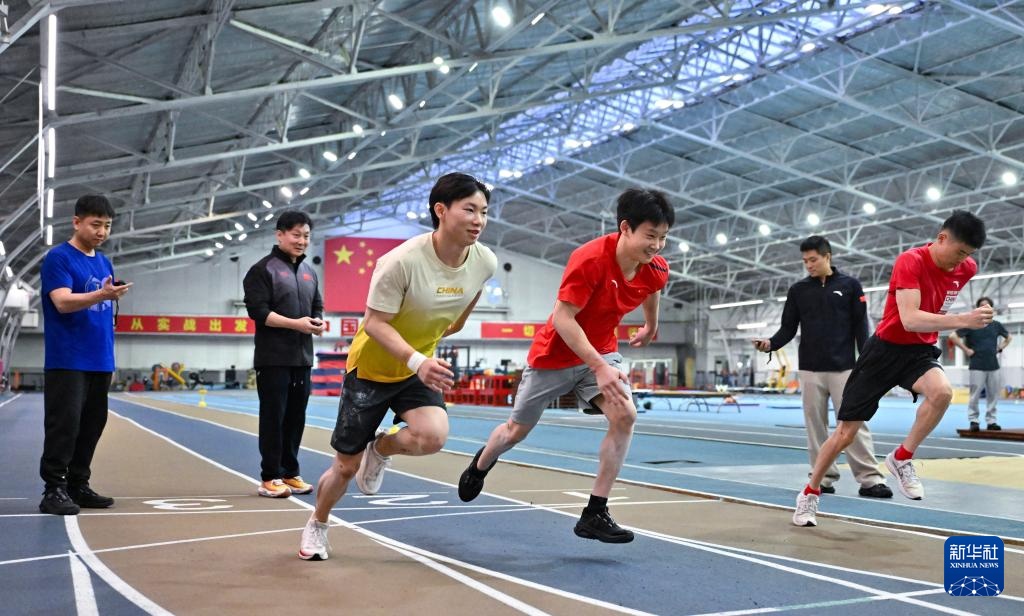 3月14日,杨定锴(右一)在体能测试400米跑项目中。新华社记者 陶希夷 摄