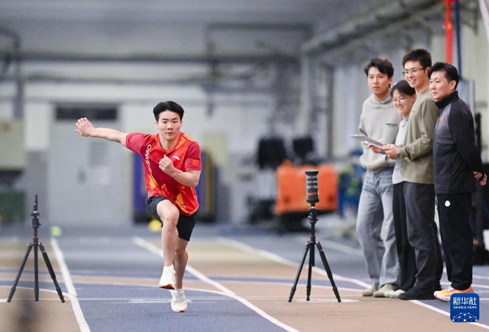 3月14日,洪延明在体能测试间隙。新华社记者 陶希夷 摄