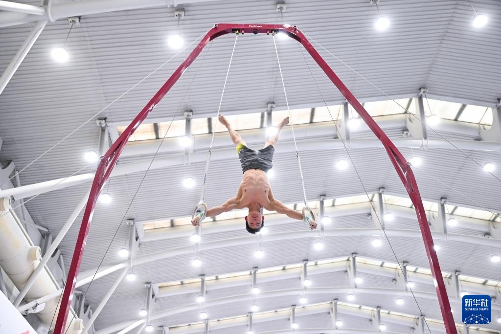 3月14日,刘恒宇在体能测试吊环项目中。新华社记者 陶希夷 摄