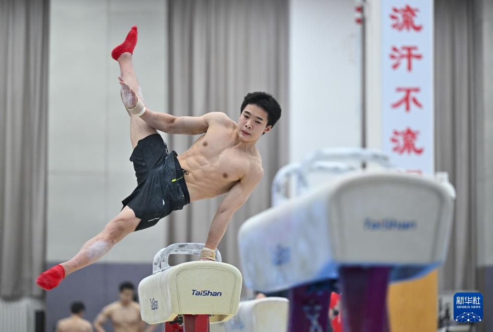 3月14日,队员在体能测试鞍马项目中。新华社记者 陶希夷 摄