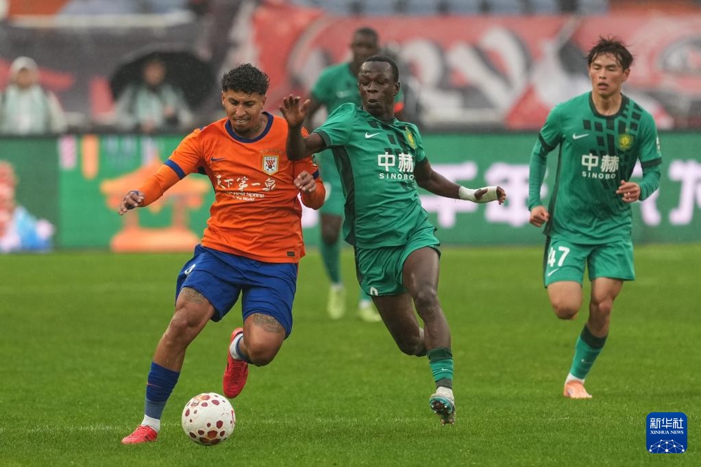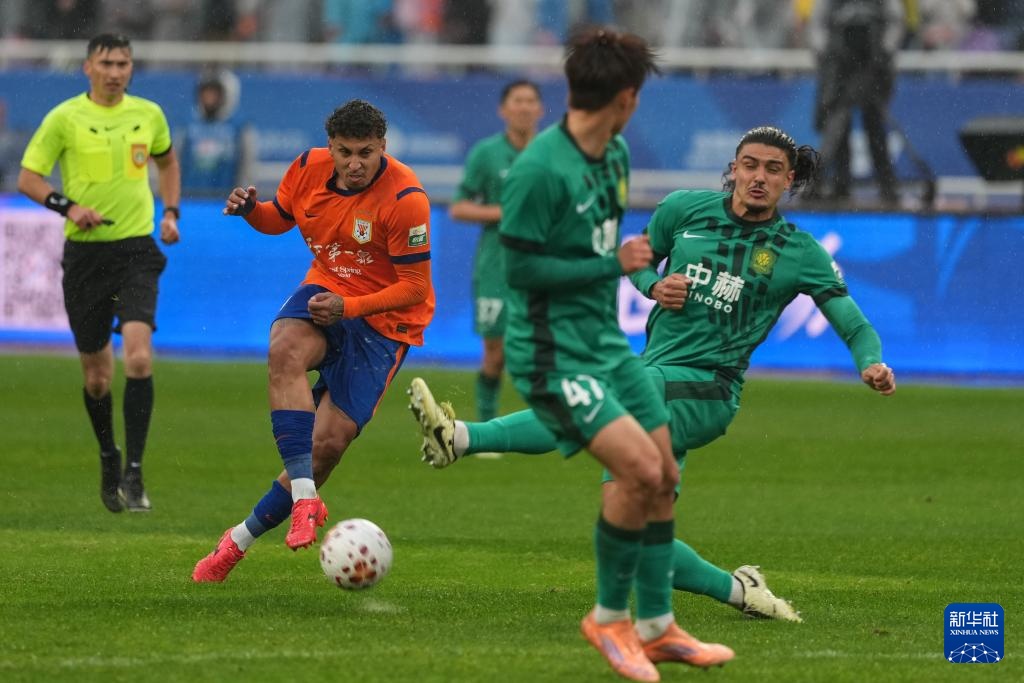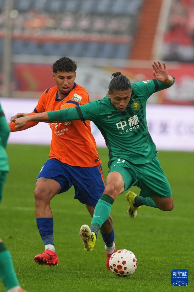 3月14日,山东泰山队球员泽卡(左)在比赛中突破。新华社记者 朱峥 摄