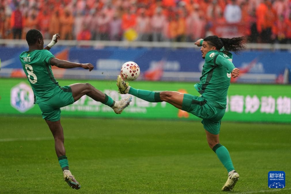 3月14日,山东泰山队球员泽卡(右)在比赛中争球。新华社记者 朱峥 摄