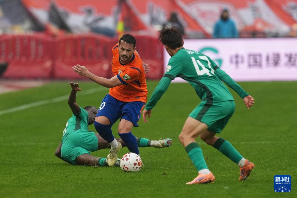 3月14日,北京国安队球员孔特(左)在比赛中。新华社记者 朱峥 摄